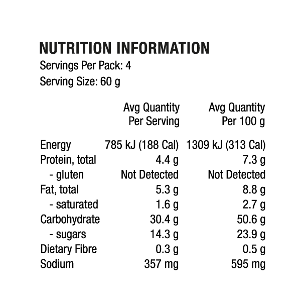 - Country of origin: Made in Australia from at least 82% Australian Ingredients